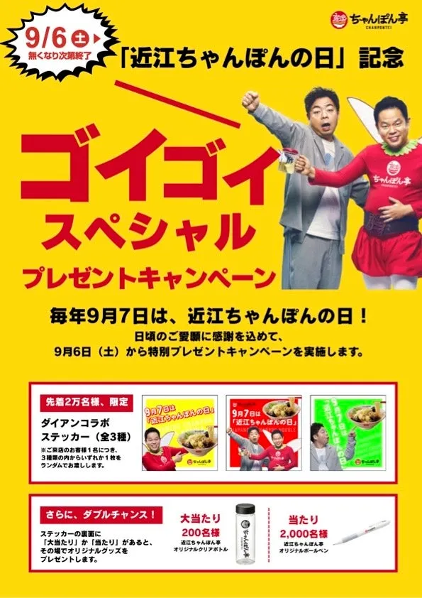 近江ちゃんぽん亭の公式ウェブサイトも是非ご覧ください。特別企画の詳細情報が掲載されています。