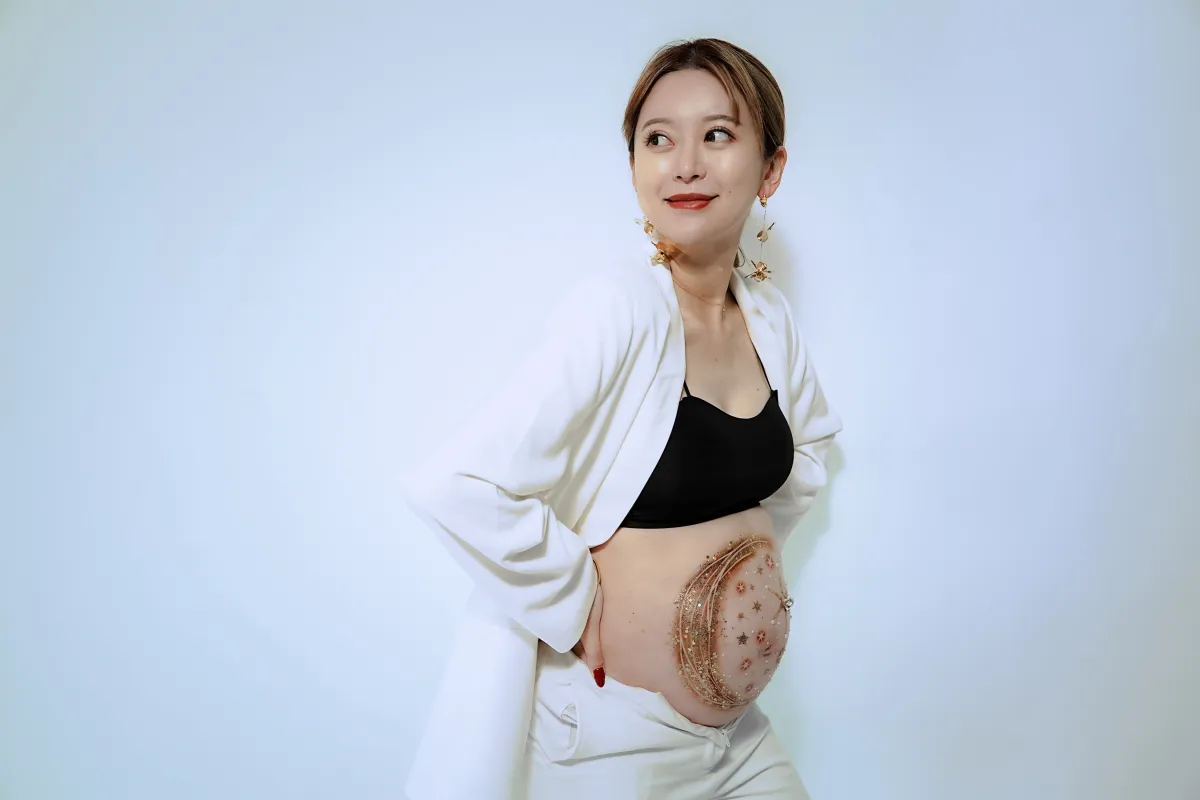 『Belly Couture』の最大の特徴は、専門のボディアーティストによるジュエリーをイメージしたマタニティペイントです。ラメやストーンを使用することで、妊娠中の女性の肌を美しく彩り、特別なジュエリー感を演出します。このペイントは、妊娠中の限られた時間にしか味わえないユニークな体験です。