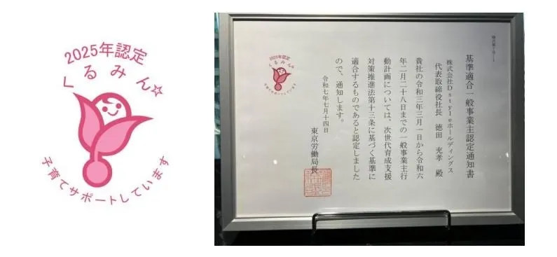株式会社Dstyleホールディングス(東京都渋谷区、代表取締役会長兼社長:徳田充孝)は、次世代育成支援対策推進法に基づき、2025年7月14日付で厚生労働大臣より「くるみん認定」を獲得しました。この認定は、従業員が仕事と子育てを両立できる環境を積極的に整備した企業に与えられます。