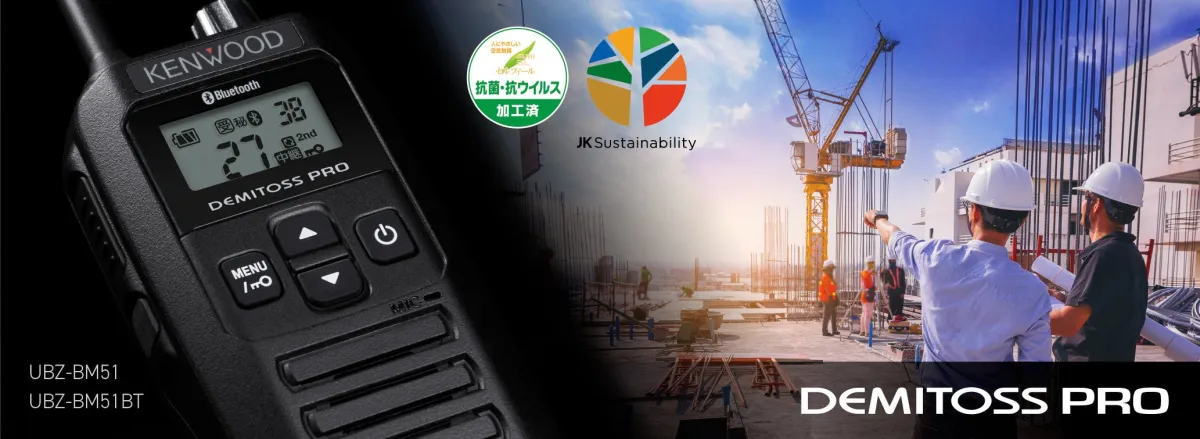 特定小電力トランシーバー“DEMITOSS PRO”の新モデル「UBZ-BM51」と「UBZ-BM51BT」は、確かな性能と使いやすさを兼ね備え、過酷な環境での使用に適した商品です。ぜひ、業務用のコミュニケーションツールとしてご検討ください。詳しくは、株式会社JVCケンウッドのウェブサイトをご覧ください。