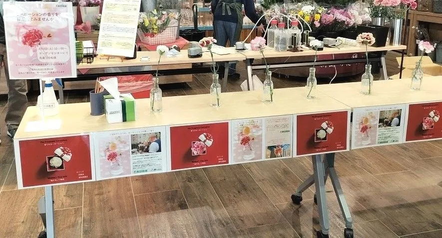 今回のアンケート調査は、カインズ 茂原店での初回調査を経て、浦和美園店で行われる2回目となります。さまざまな品種のカーネーションの切り花を用意し、それぞれの香りをお客様に評価してもらう形で行われます。参加するお客様は、香りを嗅ぎながら質問票に回答することで、好まれやすい香りや長持ちする品種についての意見を述べます。これにより、業界における品質向上に貢献できる貴重なデータが集められることになります。