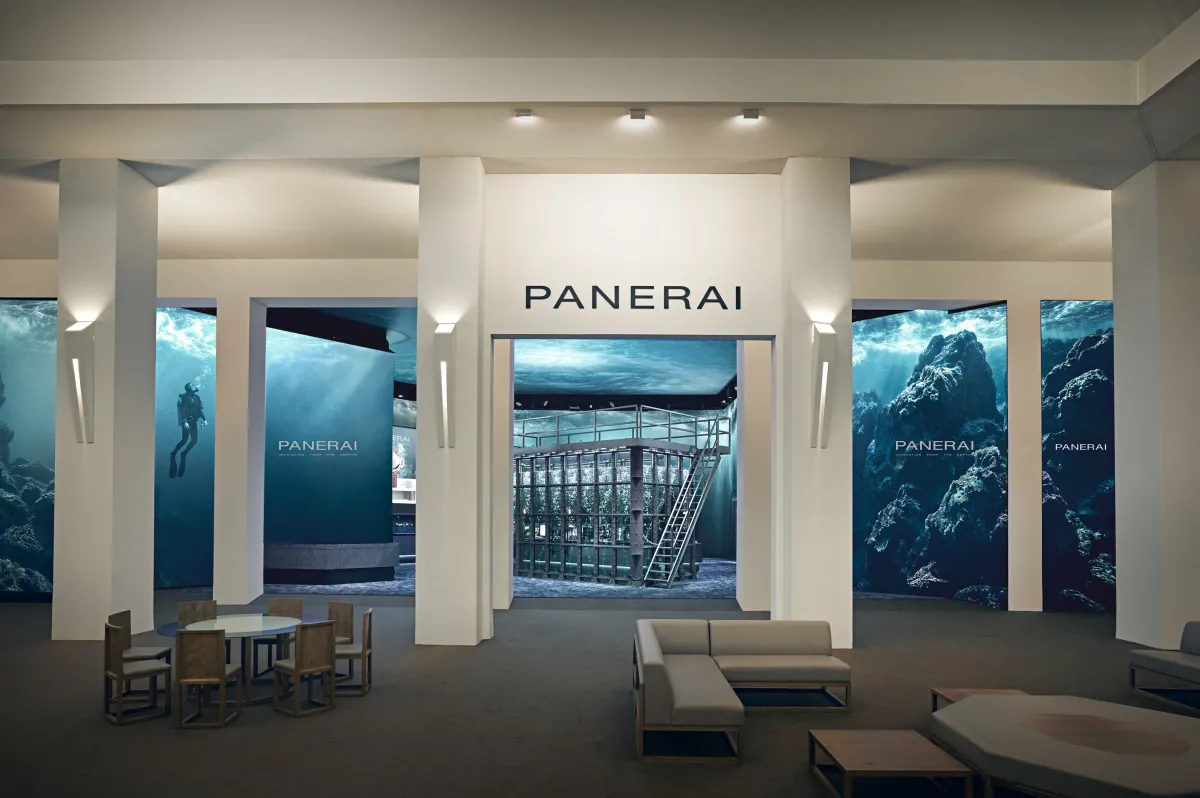 2023年のWatches and Wondersでの展示会において、パネライは非常に興味深いアプローチを見せました。特に印象的だったのは、イタリア海軍の特殊潜水部隊向けに設計された水中訓練用タンクの再現です。これは単なる展示ではなく、ブランドの海との深い関係を象徴しています。