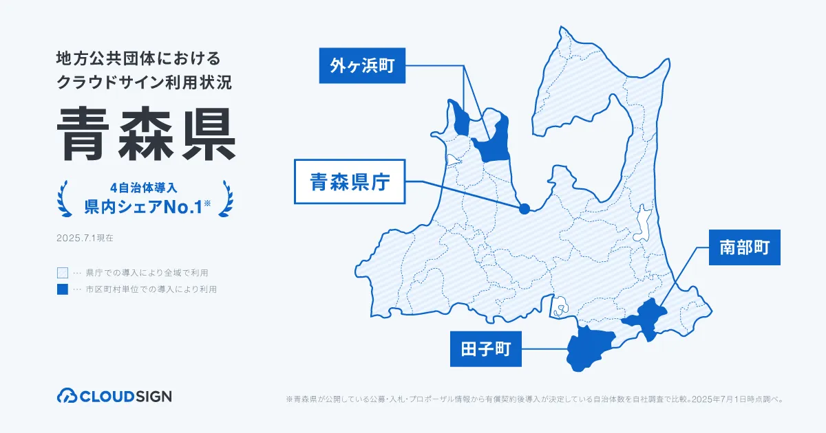 弁護士ドットコム株式会社が提供する契約マネジメントプラットフォーム「クラウドサイン」が、青森県内の4つの自治体に導入され、支援が行われたことが発表されました。これにより、青森県、外ヶ浜町、田子町、南部町が電子契約を採用することになり、行政運営の効率化が図られます。