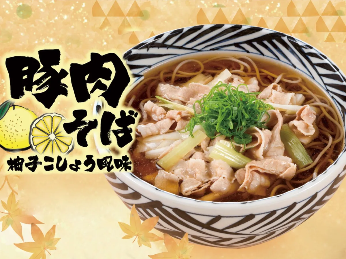 このメニューは、豚肉の旨味を引き立てる柚子こしょうの風味が特徴です。あつあつのそばにスライスされた豚肉、大地の魅力を楽しめる出汁との絶妙な組み合わせが飽きることなく食べられます。柚子の爽やかな香りとピリッとした辛さがクセになります。