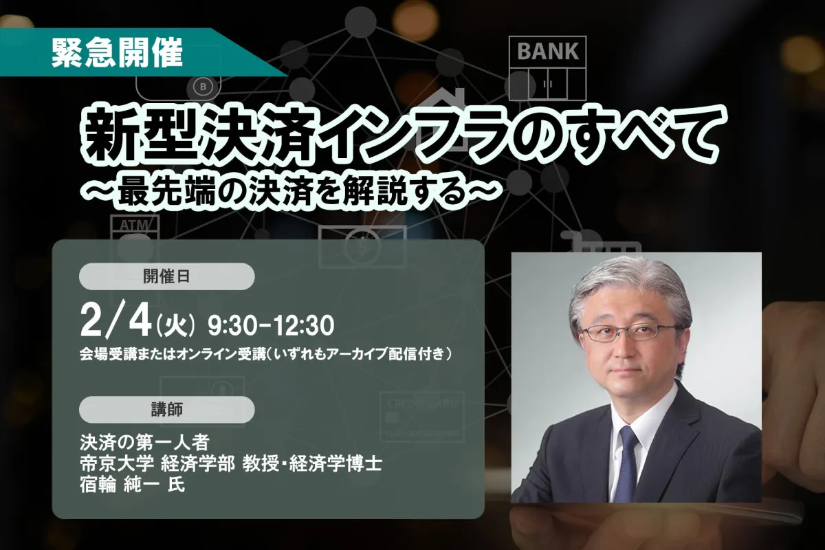 2025年2月4日に、株式会社セミナーインフォが新型決済インフラに関するセミナーを開催します。このセミナーでは、帝京大学経済学部の宿輪純一教授が講師として登壇し、現在の決済システムの仕組みやその発展、さらには近未来の展望について、詳しく解説してくれます。参加者には、宿輪氏が著した『決済インフラ入門[2025年版]』がサブテキストとして配布され、実際の講義で活用されます。