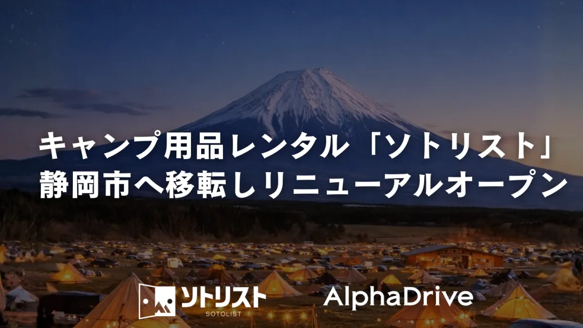 株式会社アルファドライブ(以下、AlphaDrive)が、キャンプ用品レンタルサービス「ソトリスト」の新しい店舗を静岡市に移転し、リニューアルオープンすることになりました。これは、2025年12月に同事業の事業承継を行ったことに伴うもので、ユーザーのニーズに応えるために店舗機能を強化し、サービス向上を図ることを目的としています。