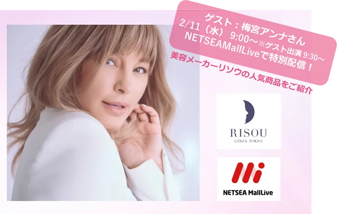 美容業界で知られるタレント・ファッションモデルの梅宮アンナさんが、株式会社SynaBizが運営するTikTok Shopアカウント「NETSEAMallLive」にゲスト出演し、美容メーカー「リソウ」の人気商品を特別に紹介します。配信は2月11日(水)09:00から開始される予定で、アンナさんは09:30から登場します。