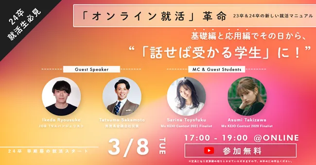 特に注目したいのが、登壇者たちです。株式会社ベクトルの池田亮輔氏をはじめ、営業の達人であるプルデンシャル生命保険の坂本達真氏、さらにはミス慶応コンテスト出場者のゲストスピーカーも招かれています。これにより、多様な視点からの情報提供が期待できます。