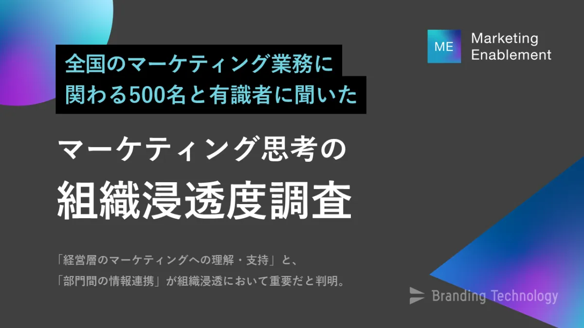 ブランディングテクノロジー株式会社が、マーケティングに関わる業務に従事する500名を対象にした調査結果を発表しました。この調査では、特に『経営層のマーケティングへの理解・支持』と『部門間の情報連携』が組織におけるマーケティング思考の浸透において重要であることが示されました。