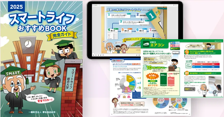 一般財団法人 家電製品協会が、脱炭素社会への第一歩として、2025年度版「スマートライフおすすめBOOK」を発表しました。これは、省エネ・創エネ・蓄エネといったエネルギーの利用方法を可視化し、効率的な生活スタイルを提案するためのコンテンツです。