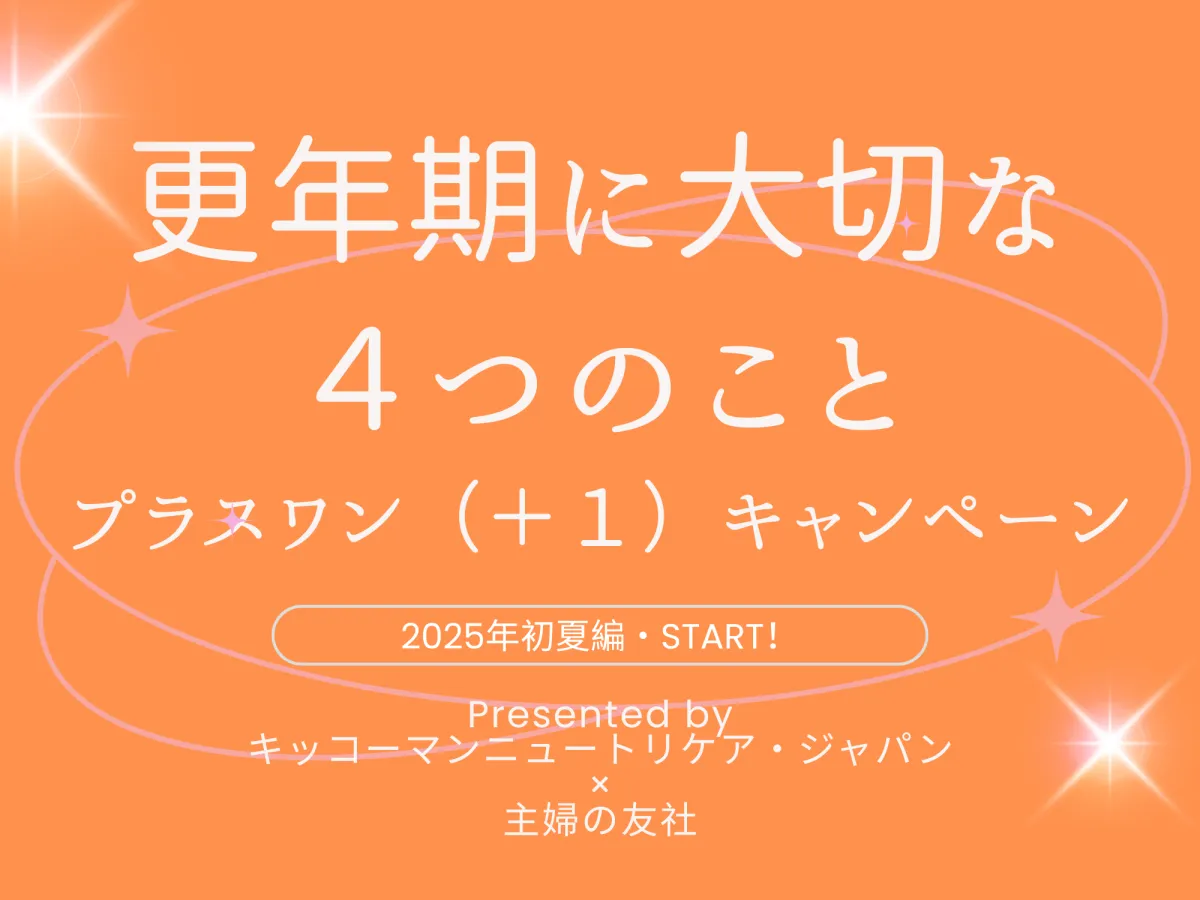 2024年11月1日より始まった「更年期に大切な4つのこと(+1)キャンペーン」が、2025年初夏編として5月30日から新たにスタートします。このキャンペーンは、キッコーマンニュートリケア・ジャパン株式会社と主婦の友社との共同プロジェクトで、多くの女性たちがこの大切な時期をより健やかに過ごせるよう支援することを目的としています。