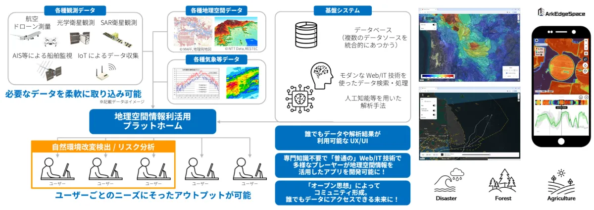 採択された事業のタイトルは、「多様な衛星を活用した自然環境改変やリスクの検出・分析手法とプラットフォームの開発に関するR&D事業」です。このプロジェクトは、衛星データの有効活用を通じて自然環境の変化や影響を長期的かつ効率的に把握することを目的としています。特に、人間の活動や自然現象、災害による影響を迅速に検出し、得られたデータを多くの関係者に共有することで、効果的な施策の立案を目指しています。