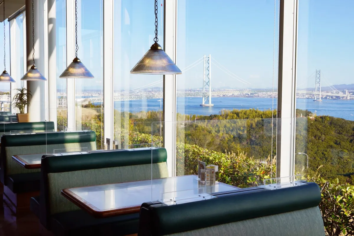 淡路サービスエリア上り線には、晴れた日には特に美しい景観が広がります。「橋のみえる丘」と称されるこのエリアから望む明石海峡大橋は、旅の疲れを癒してくれる特別な場所です。