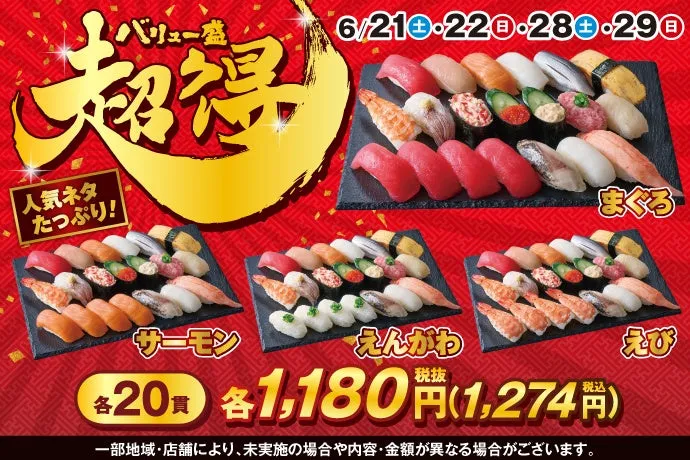 株式会社小僧寿しが展開する持ち帰りすしの名店、小僧寿しでは、来る6月21日(土)から特別企画「超得バリュー盛フェア」を開催します。このイベントは、6月の特定日である21日、22日、28日、29日に実施され、お得感満載の寿しを楽しむことができます。すでに多くの方から好評を得ている「バリュー盛」がさらにパワーアップして登場!
