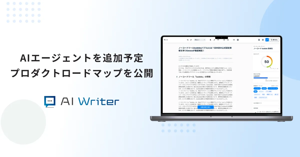 私たちは今後も「誰もが短時間で質の高いコンテンツを生み出せる世界」を目指し、アップデートを重ねてまいります。新時代のライティング体験を、今すぐAI Writerで体感してみてください。