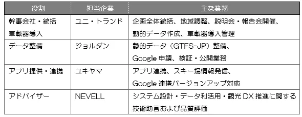 ユニ・トランドが幹事会社となる「地方創生モビリティコンソーシアム」には、ジョルダン株式会社や株式会社ユキヤマなどのメンバー企業が参加し、観光交通のDXを目指しています。これまでの活動を通じて、観光地へのアクセス、データの更新、そして他の地域との連携を進めてきました。