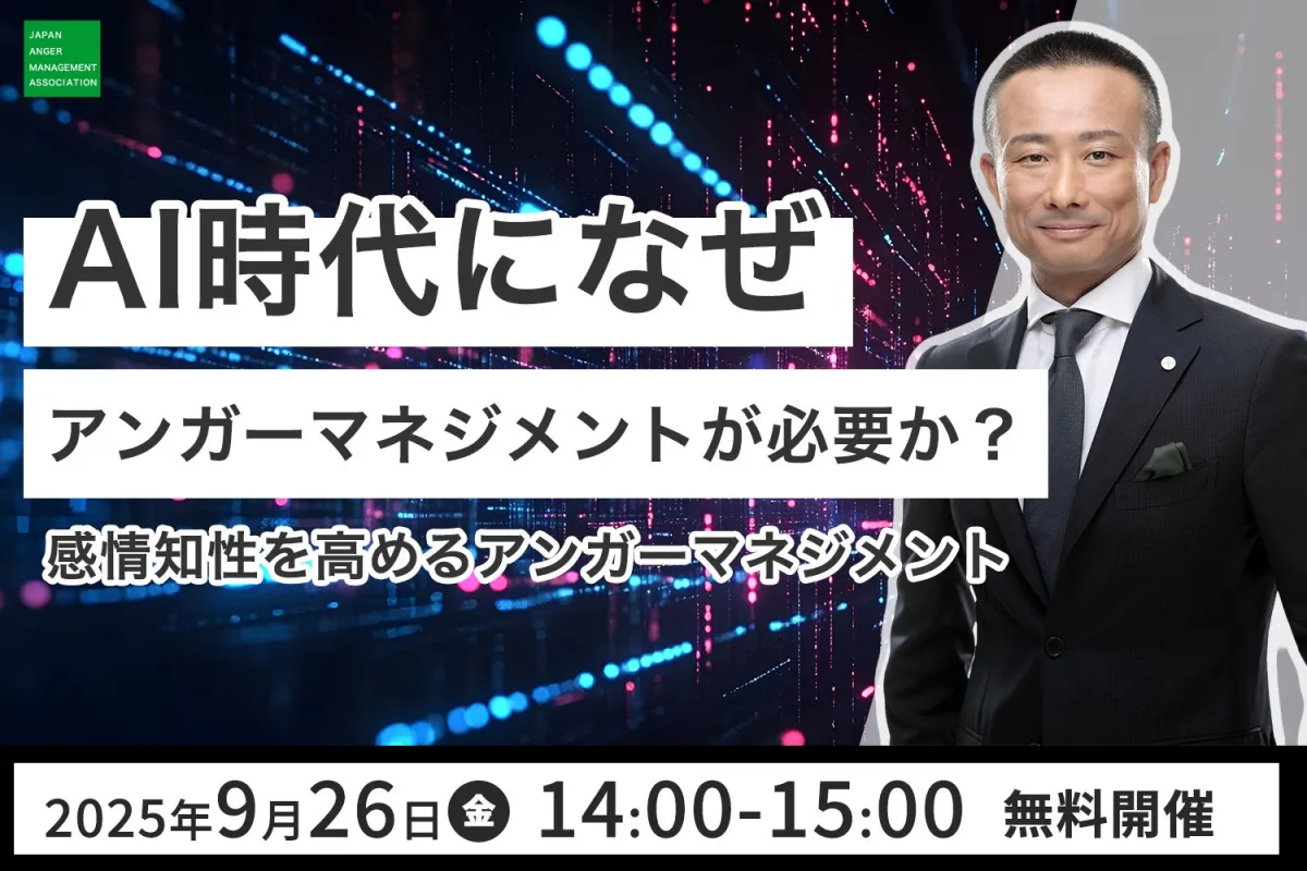2025年9月26日(金)、アンガーマネジメントの第一人者である安藤俊介氏による無料オンラインセミナーが開催されます。このセミナーのテーマは「AI時代になぜアンガーマネジメントが必要か?」です。AIの進化によって私たちの生活は一変していますが、どれだけテクノロジーが発展しても、感情は人間にとって欠かせない要素です。安藤氏は、感情知性を高めるための実践的な方法についても触れ、多くの人が直面している感情の扱い方に焦点を当てます。