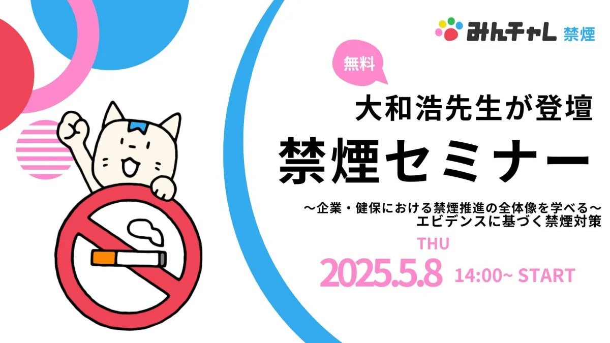 さらに、このセミナーに参加すると、衛生委員会で使える禁煙推進のスライドや、大和教授による禁煙に関するQ&A集が手に入る特典も用意されています。また、生活習慣改善プログラムである「みんチャレ健康サポート」の紹介も予定されています。