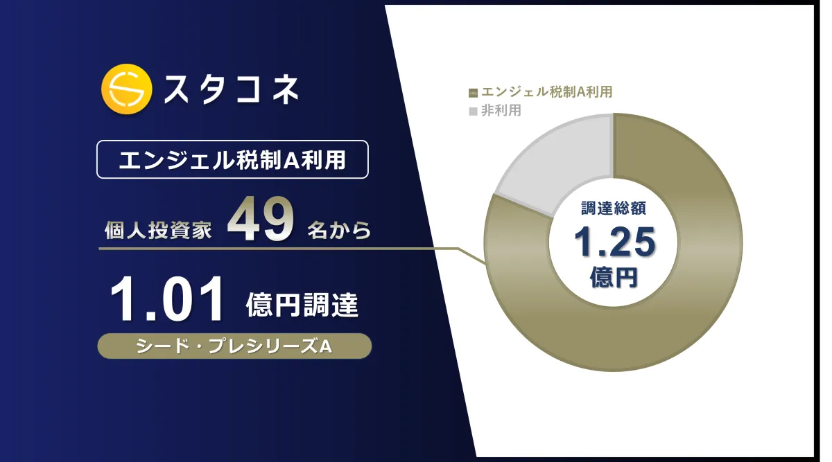 株式会社スタートアップコネクト(スタコネ)は、最近シード・プレシリーズAラウンドにおいて約1.25億円の資金調達を完了しました。特に注目すべきは、49名の個人投資家からおよそ1.01億円を獲得したことです。この出資の大部分はエンジェル税制の優遇措置を活用して得られたものです。