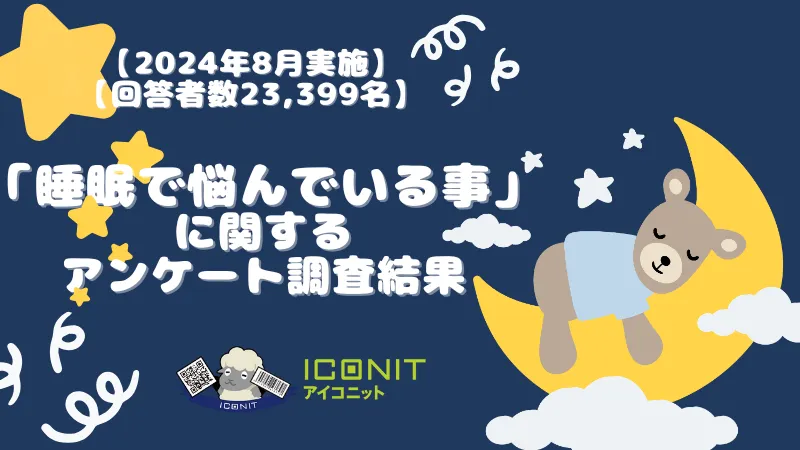 2024年8月11日、株式会社メディアシークが提供する「QR/バーコードリーダー・アイコニット」のアプリ内で実施された「アイコニット・リサーチ」において、23,399名のユーザーを対象に「睡眠に関する悩み」に関するアンケート調査が行われました。調査の結果、多くの人が睡眠に対して様々な悩みを抱えている実態が明らかになりました。調査の全体概要を見ていきましょう。
