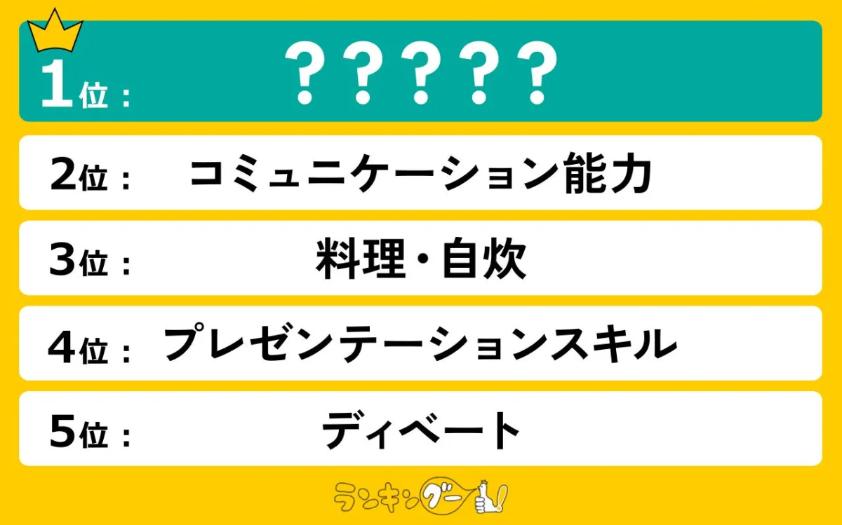 第4位には、ビジネスシーンで評価されるプレゼンテーションスキルが入っています。「分かりやすく簡潔に説明出来る能力は、職業問わず重宝される」との声も上がり、このスキルの重要性が伺えます。