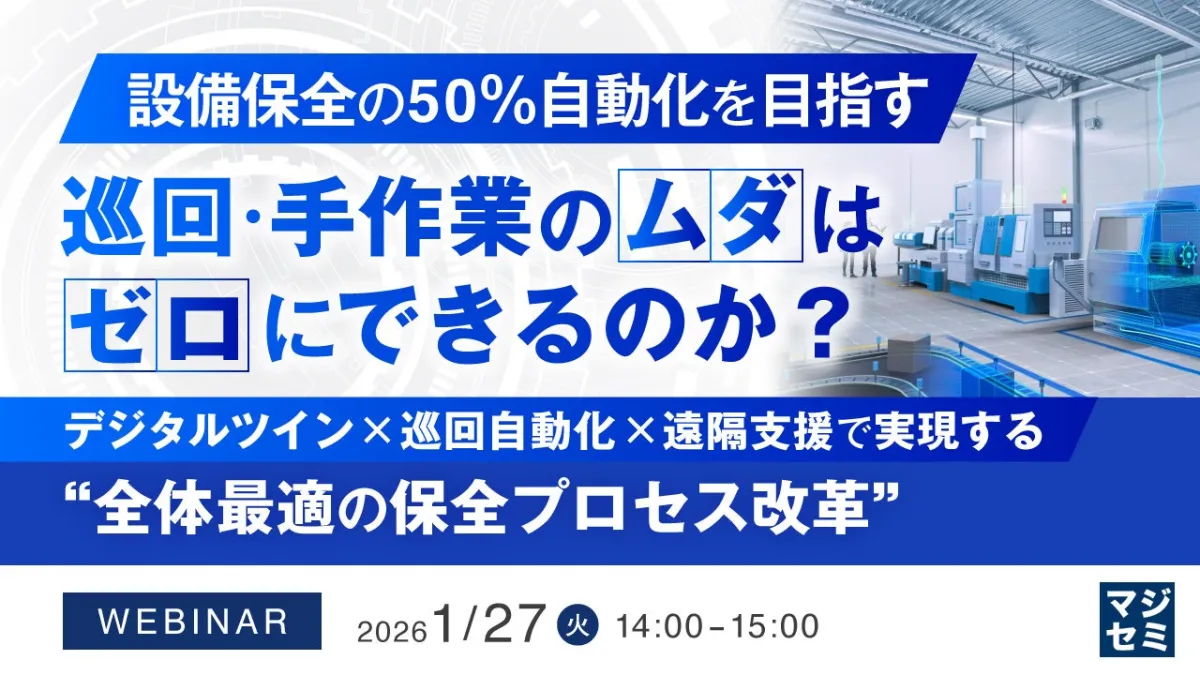 このたび、設備保全に関するウェビナーが開催されます。このセミナーでは、巡回や手作業に潜む無駄を排除し、効率的かつ持続可能な保全体制の構築を目指します。保全業務の自動化に向けた具体的な考え方や先端技術の導入について学ぶことができます。