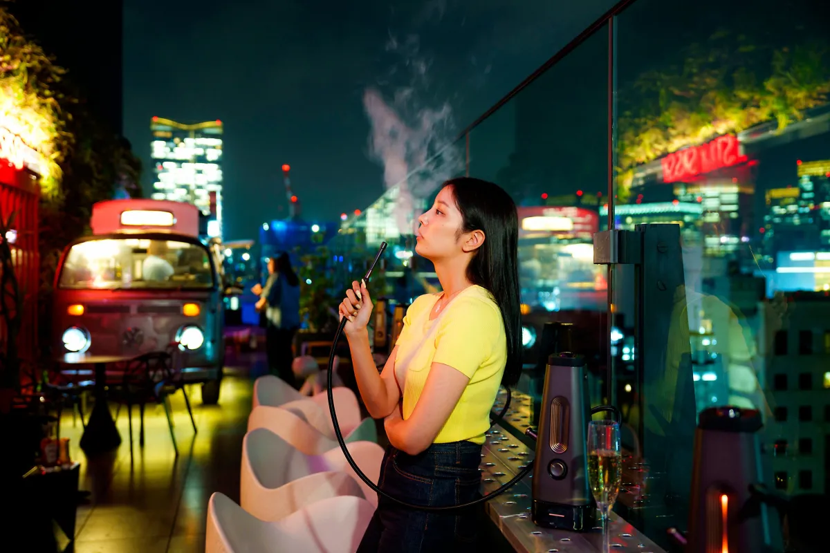 東京都中央区銀座に位置するアロフト東京銀座では、最新のエレクトリックシーシャが新たに提供開始されました。4月1日より、ルーフトップバー「Roof Dogs」にてこの革新的なシーシャ体験が楽しめるようになりました。このエレクトリックシーシャは従来の炭を使用せず、温度管理がオートメーション化されているため、いつでも安定した煙とフレーバーを提供します。これにより、よりクリーンで健康に配慮した楽しみ方が可能です。