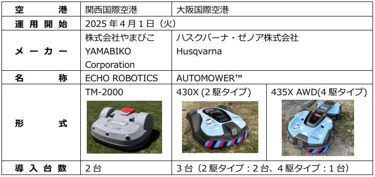 関西空港と大阪国際空港にロボット芝刈機が登場
