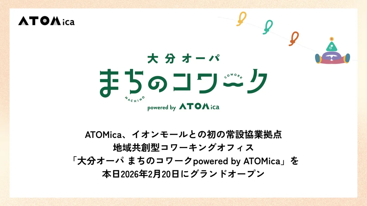 2026年2月20日、株式会社ATOMicaとイオンモールが共同で大分市のショッピングモール「大分オーパ」内に、地域課題の解決に取り組むコワーキングオフィス『大分オーパ まちのコワーク powered by ATOMica』をオープンしました。これは両社にとって初の常設協業拠点であり、地域の活性化を図る新たな試みです。