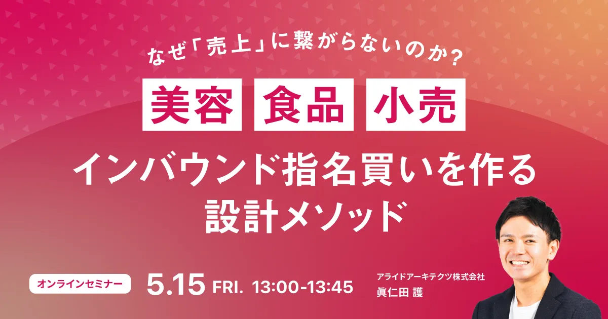 アライドアーキテクツ株式会社が主催するオンラインセミナーが、2026年5月15日(金)に開催されます。本セミナーは、美容、食品、小売業界の企業に向けて、インバウンド市場の特性を活かした効果的なマーケティング手法を学ぶ絶好の機会です。企業が直面する課題を掘り下げ、売上向上に繋がる具体的な施策を紹介します。