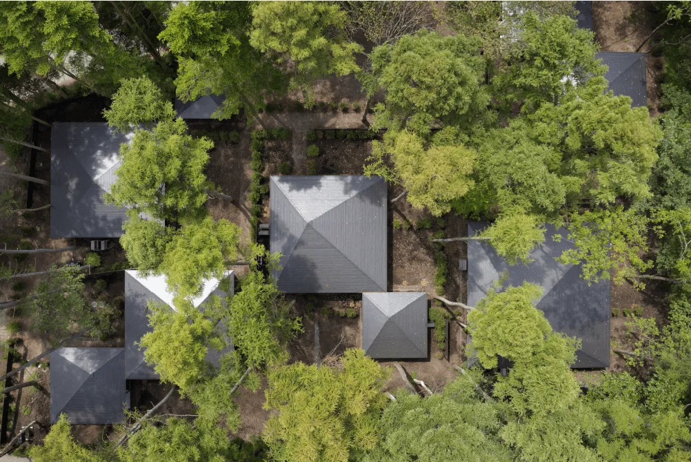 「森の離れ」は、建築事務所TNAによって設計された5棟の独立型ヴィラから構成されています。そのデザインはガラスと木材を基調としており、まるで森の中にいるかのような開放感を醸し出しています。棟内には自然光が差し込み、四季の移ろいを感じ取ることができ、訪れる人々を静謐な時の流れに包み込むのです。