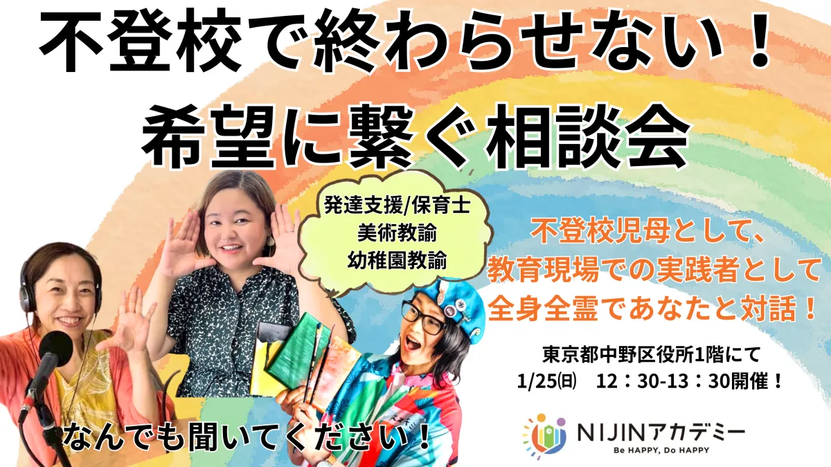 2026年1月25日(日)、東京都中野区役所の「ナカノバ」にて、株式会社NIJINが運営するNIJINアカデミーの教室長による対面相談会が開催される。このイベントは、不登校の子どもを育てる親と教育現場の専門家が直接対話を行う貴重な機会だ。