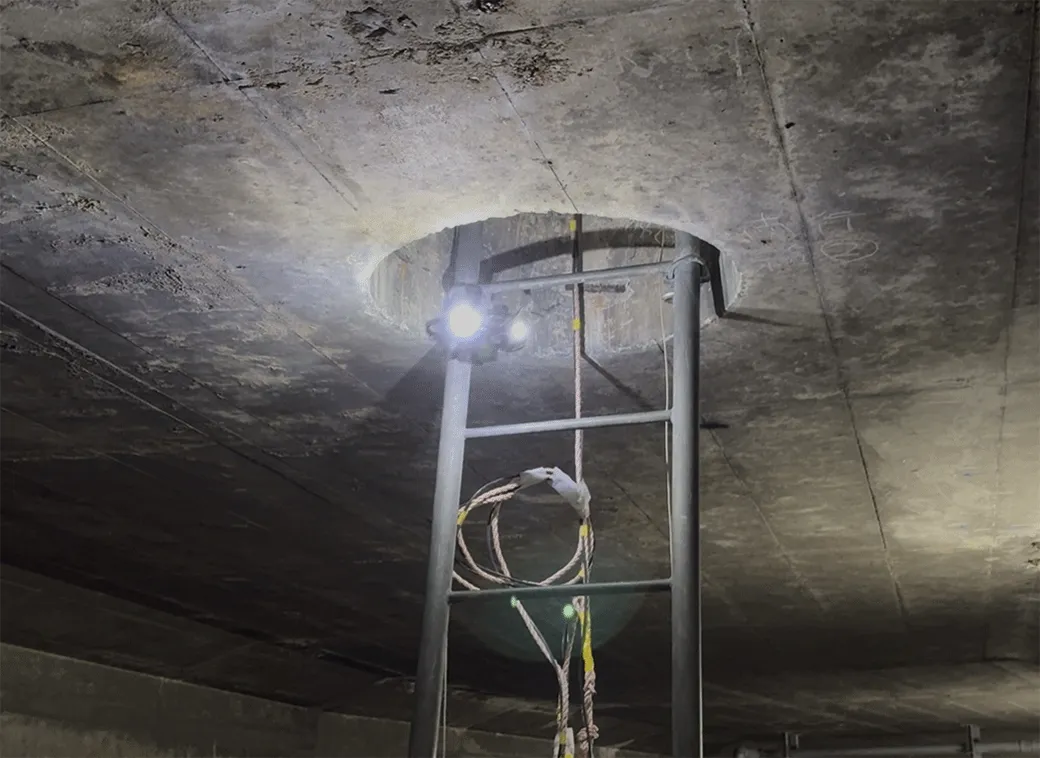 実証実験は、2026年2月9日と12日の2日間にわたって行われました。目的は、電波環境が悪く、通信機器の使用が制限された狭小空間において、ドローンがいかに実用的な構造物点検を行えるかを検証することでした。実験の舞台は、首都高速八重洲線のトンネル換気ダクト内。この場所は、非GNSS(GPSが届かない)、暗所、電波不感地帯と、過酷な条件が揃っています。