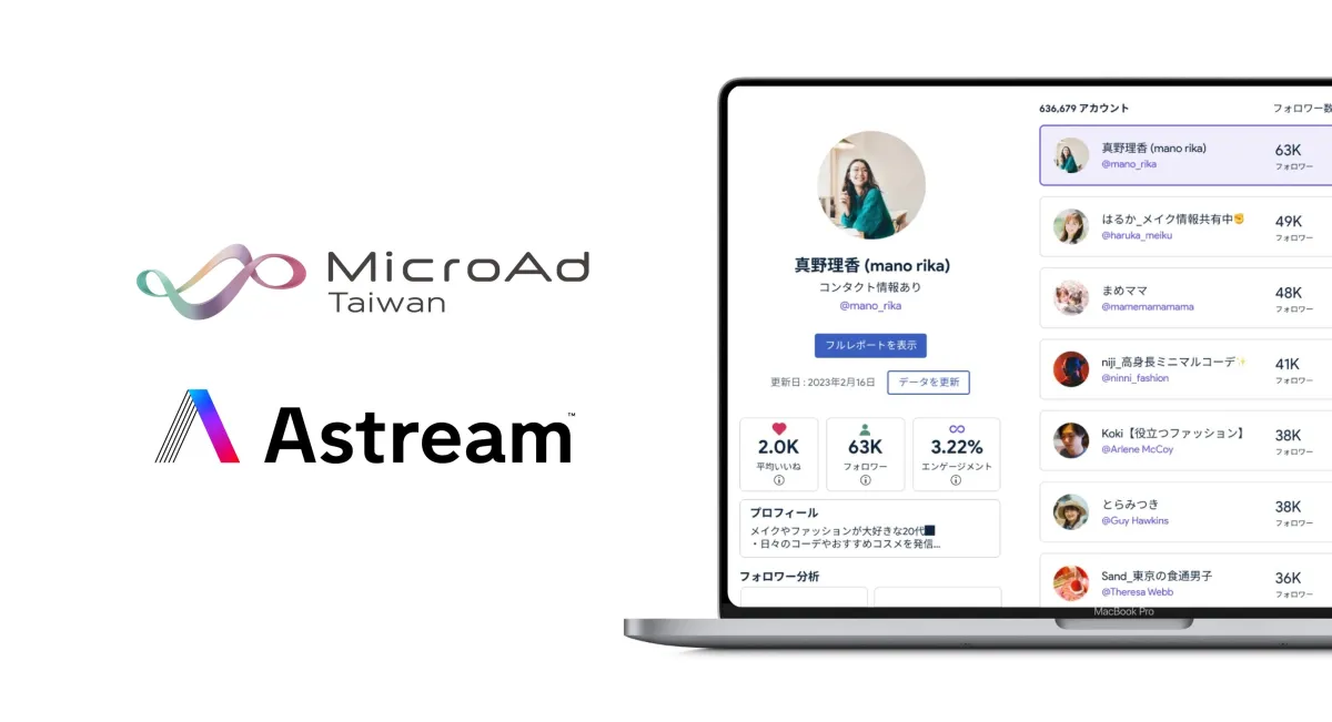 株式会社マイクロアド(以下、マイクロアド)は、台湾・インドネシア市場においてインフルエンサーを利用したマーケティング支援を開始します。この取り組みは、株式会社Aが提供するインフルエンサーマーケティングツール「Astream」との業務提携によって実現しました。