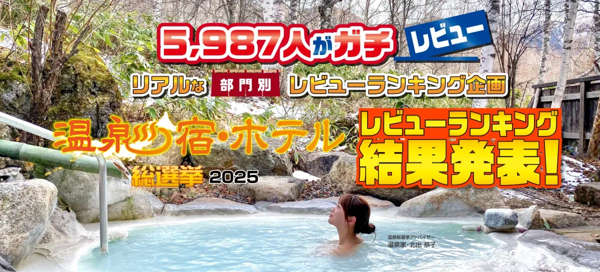 このリアルレビューは約6,000人の温泉愛好者によって行われ、具体的な体験に基づいています。評価の結果は数値化されており、各部門の1位から5位が明らかになりました。