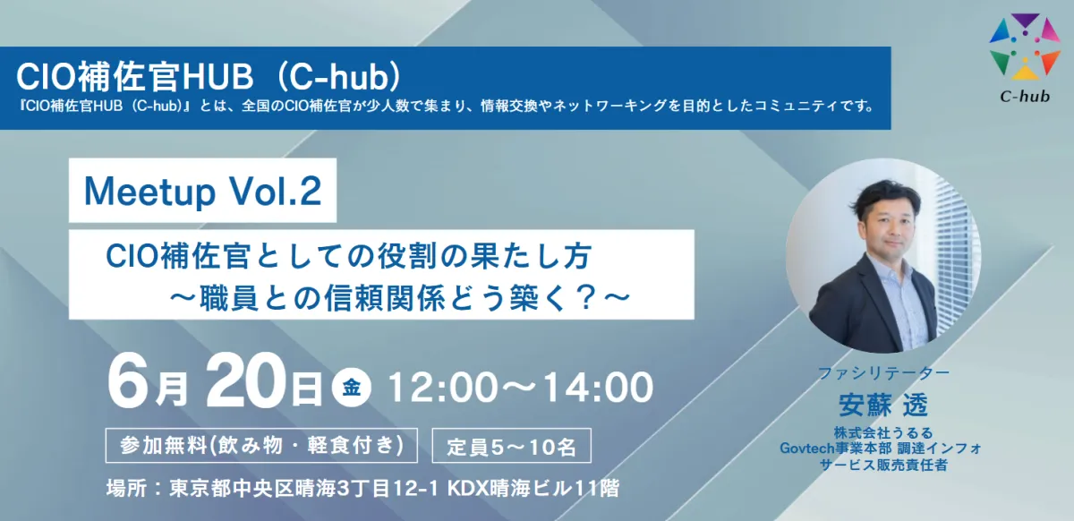 自治体DXの成功には、CIO補佐官同士の連携が不可欠です。「C-hub Meetup Vol.2」は、そのスタート地点として、多くのCIO補佐官にとって意義深い機会となるでしょう。ぜひご参加ください。