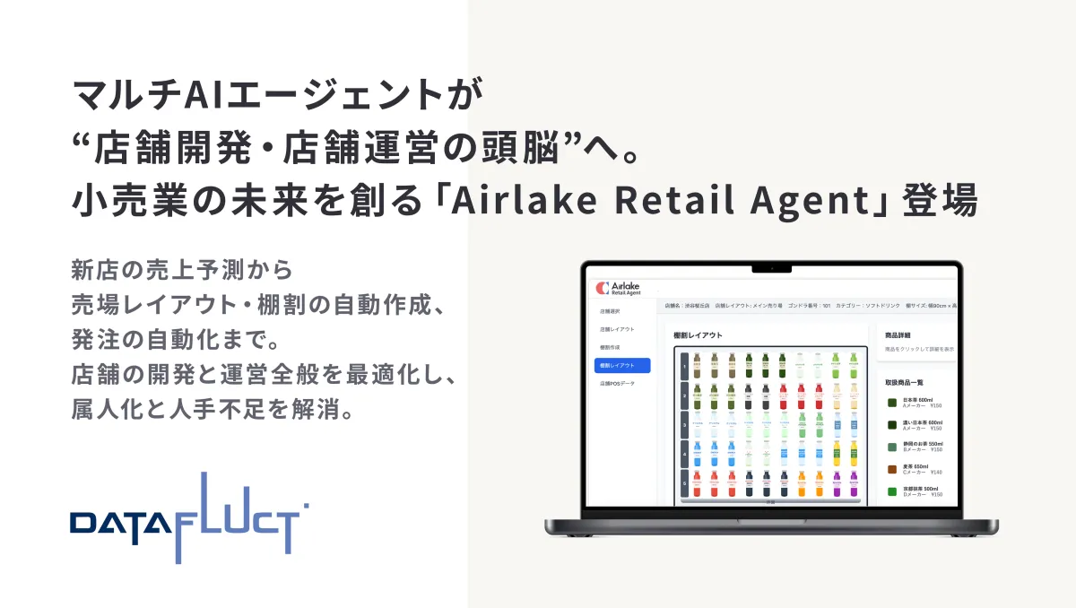 東京都渋谷区に拠点を置く株式会社DATAFLUCTが、新たなAIソリューション「Airlake Retail Agent」を発表しました。この革新的なサービスは、複数の専門AIエージェントが連携し、店舗の開発から運営に至るあらゆる業務を最適化・自動化するもの。現代の小売業で求められる売場レイアウトや棚割の設計、発注作業、価格設定の最適化まで、一連のプロセスをAIが担うことで業務効率を飛躍的に向上させます。