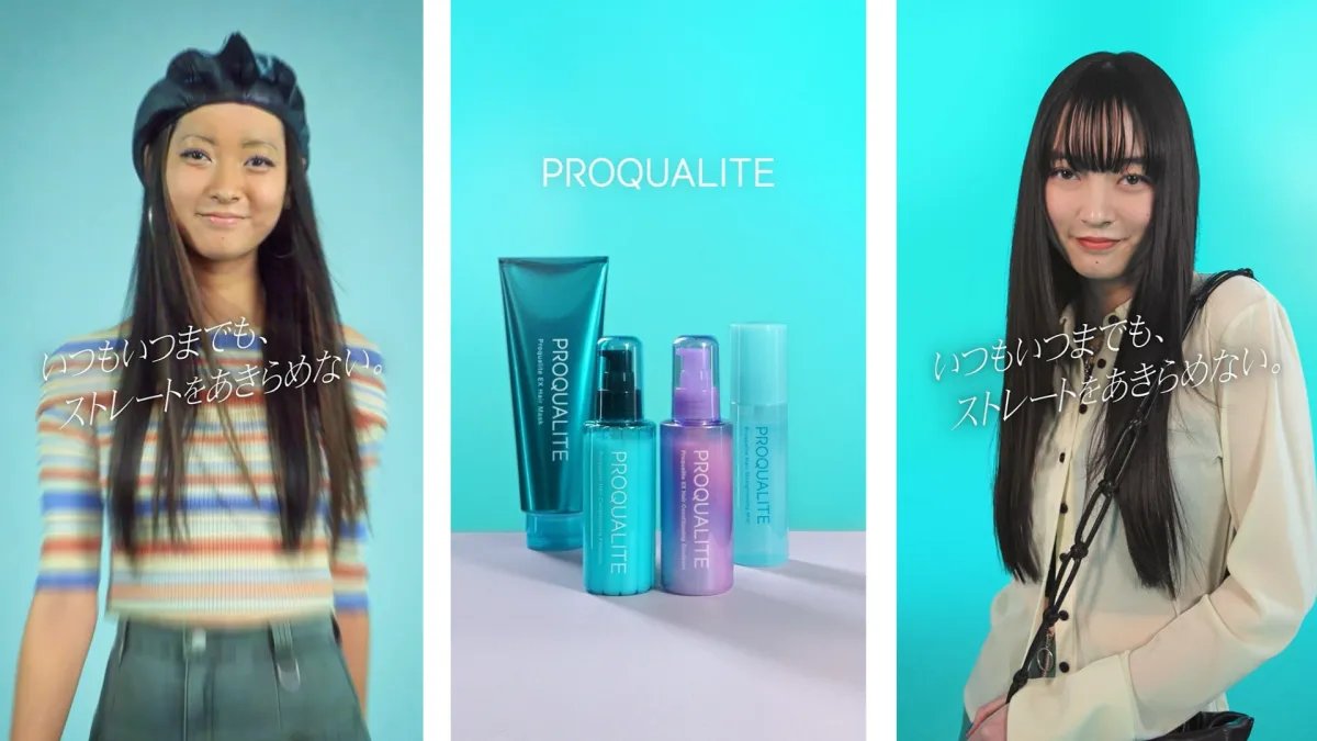「くせ毛だから、なりたい髪型をあきらめる」のではなく、「プロカリテがあるから、どんな時でもストレートヘアを楽しめる」というポジティブなメッセージが印象的です。このムービーを通じて、ブランドは視聴者に向けて毎日を楽しむ方法を提案しています。