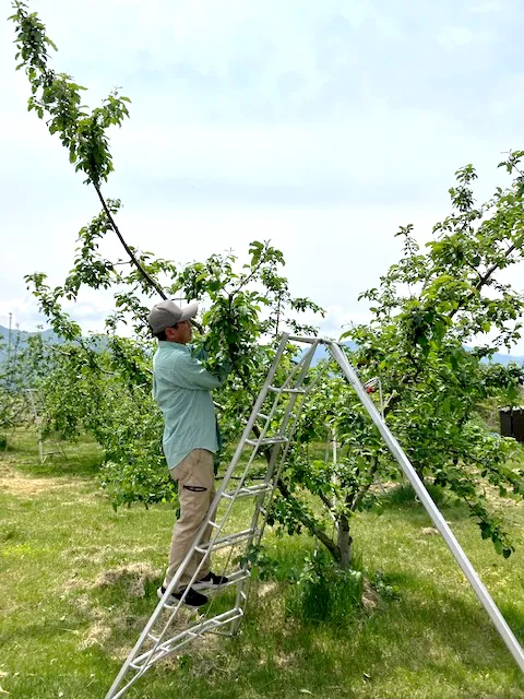 リンゴの摘果作業に参加した職員は、果実の成長に必要な地道な工程を直に体験。「手間をかけるほど、品質が向上する」ことを再確認する貴重な機会となりました。