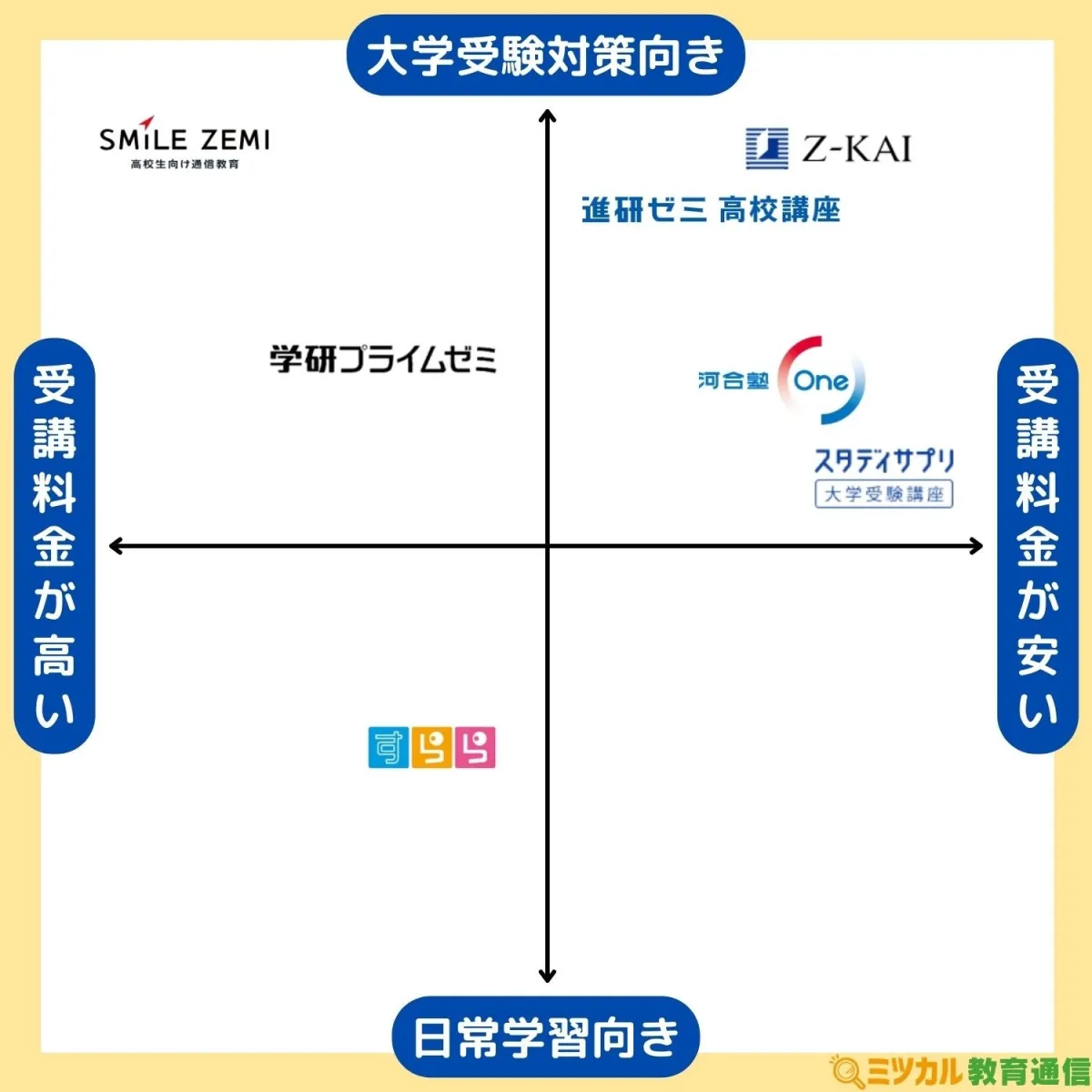 『ミツカル教育通信』が発表したポジショニングマップは、こうした状況を踏まえ、教育サービスの選び方をサポートする目的で企画されました。受講料金が高いか安いか、または大学受験に特化しているか、日常学習に適しているかといった視点で情報を整理しています。これにより、家庭がより明確にニーズに合った教材やサービスを選ぶ手助けになるでしょう。