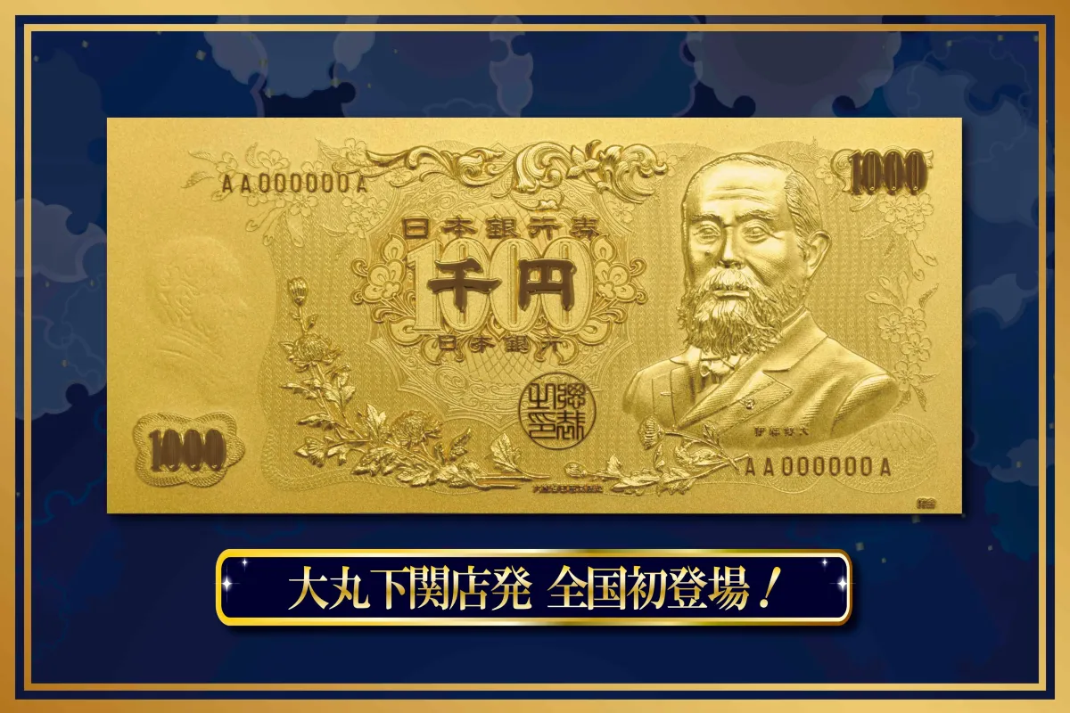 イベントのハイライトは、純金製の伊藤博文千円札(デザイン)です。山口県長州藩出身の初代内閣総理大臣である伊藤博文のデザインを模したこの千円札は、全国初公開となり、税込1,320,000円で販売されます。仕様は重さ40g、サイズ164×76mmで、厚みは0.16mmと非常に薄い仕上げとなっています。