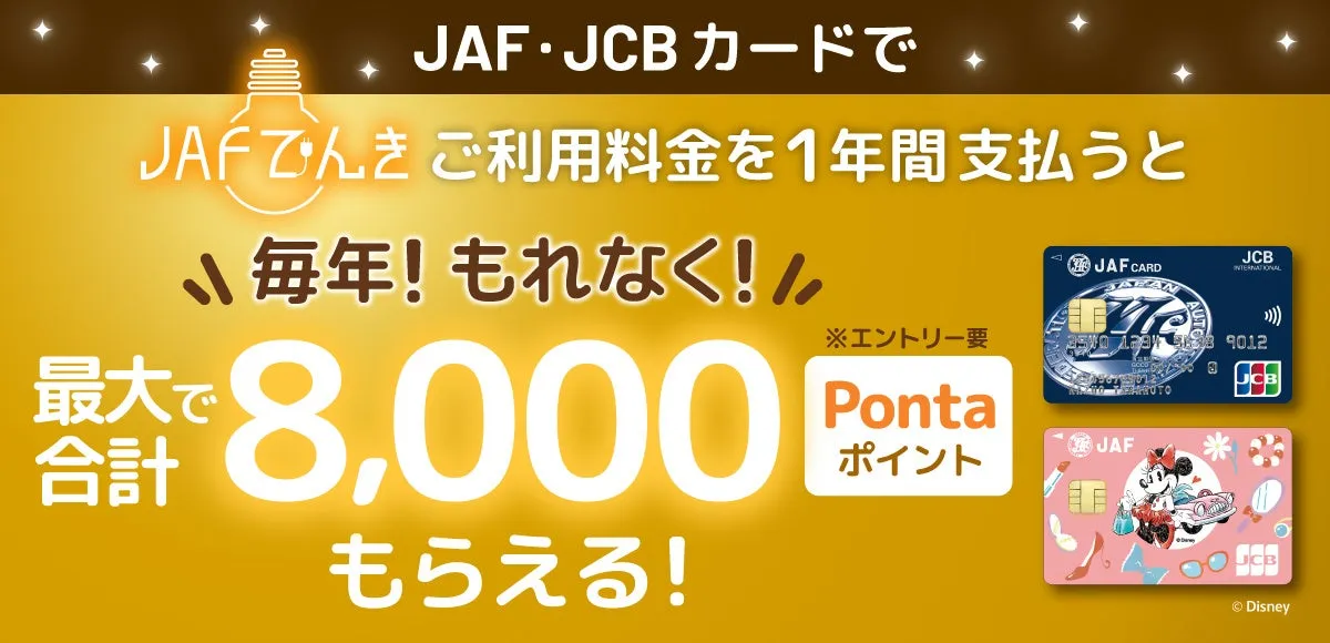 - - JAF・JCBカードで「JAFでんき」の料金を1年間支払うこと(新規・既存ともに対象)。