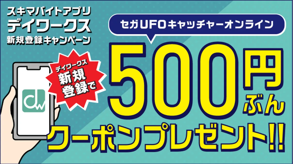 2025年12月1日より、株式会社セガ フェイブが提供する「セガUFOキャッチャーオンライン」と、スキマバイトアプリ「デイワークス」がコラボレーションした新規登録キャンペーンが開催されます。このキャンペーンでは、セガUFOキャッチャーオンラインのユーザーがデイワークスに新規登録することで、500円分のクーポンがもらえるという嬉しい特典があります。