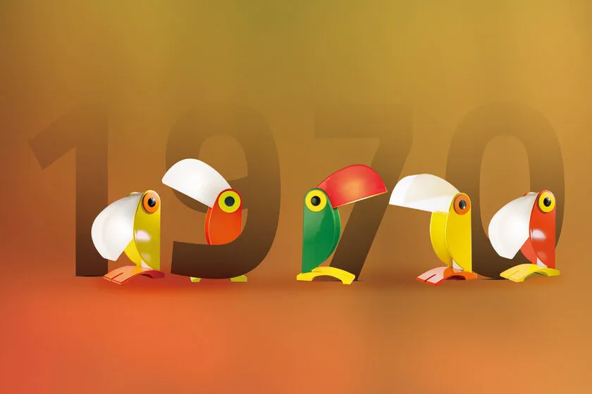 TOUCAN LAMPのデザインは、Linea Ferrari(1938-2020)が生み出したもので、1970年に誕生しました。このランプは、当時革新だったポリプロピレン「モプレン」を使用しており、その優れた強度と可塑性で、特に子供向けとして広く認知されています。優雅な曲線と幾何学的なシルエットが絶妙に調和し、世界中のミッドセンチュリーデザイン愛好者の間で愛され続けています。