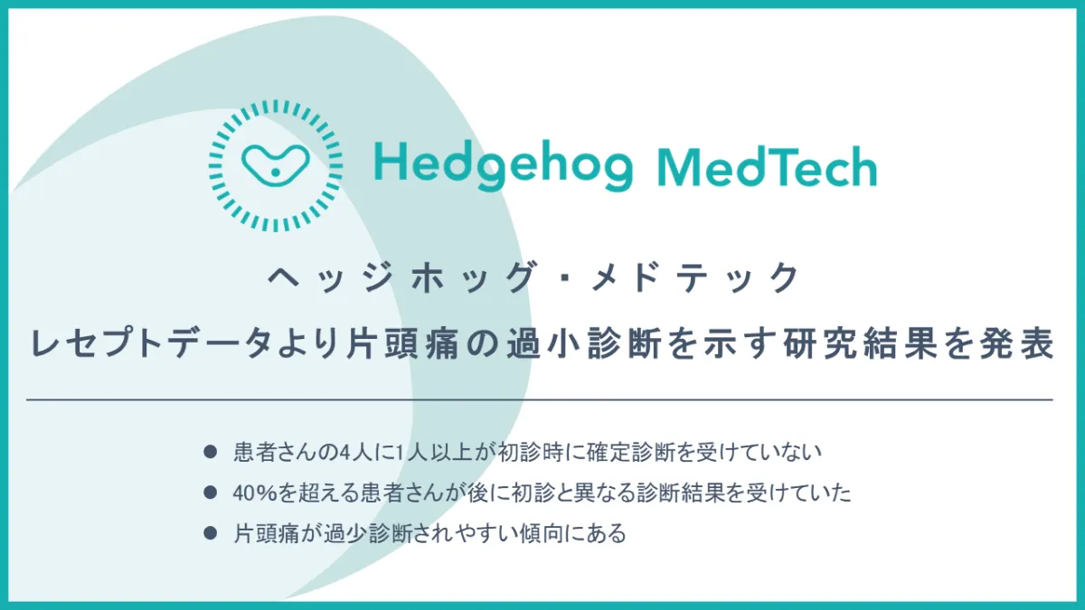 今回の研究は、日本の一次性頭痛の診断の遅延や誤診の実態を明らかにした初めての大規模研究であり、医療現場における重要な課題を浮き彫りにしています。正確な診断が行われることにより、患者の生活の質が向上し、無駄な医療費の増加を防ぐことにも繋がります。ヘッジホッグ・メドテックは、今後もこの研究結果を基にした新しい解決策を提供し続けることで、患者への貢献を目指していくことでしょう。