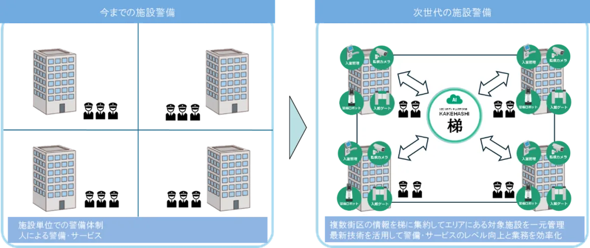 新たな取り組みとして、CSPは施設警備をエリアマネジメント手法に基づいて一元化し、複数の建物を効率よく管理する体制を整えます。このため、セキュリティプラットフォーム「梯(かけはし)」が活用され、従来の警備体制が革新される見込みです。これにより、緊急時にも複数棟を同時に管理できる能力が付与されます。
