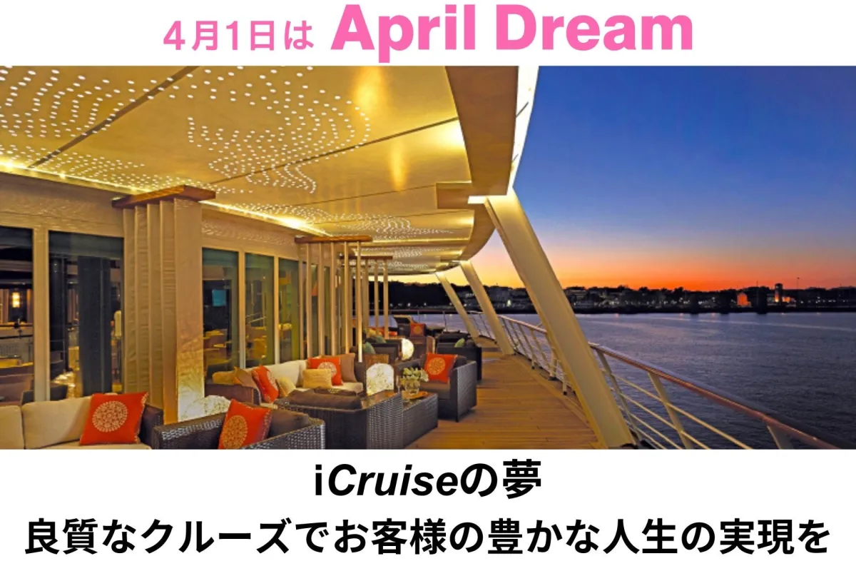 iCruise(株式会社ICM)は、近年増加している個人の自由旅行ニーズに応えるべく、クルーズ旅行とラグジュアリートラベルに特化した旅行会社として、独自の存在感を発揮しています。4月1日を夢を発信する日と定める『April Dream』プロジェクトにも賛同し、自社の夢を広げる活動も行っています。