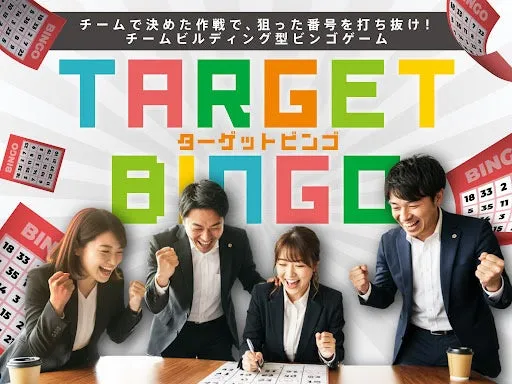 「ターゲットビンゴ」は、従来のビンゴとは異なり、参加チームが自分たちでビンゴの数字を決定する、チームビルディング型のゲームです。通常のビンゴ同様に数字が出てマスを開けることもあれば、特定の条件を満たすことで複数のマスを一度に開けることができる、戦略性のある要素が取り入れられています。これにより、チームごとに異なる作戦を立てることができ、自然なコミュニケーションを促進します。