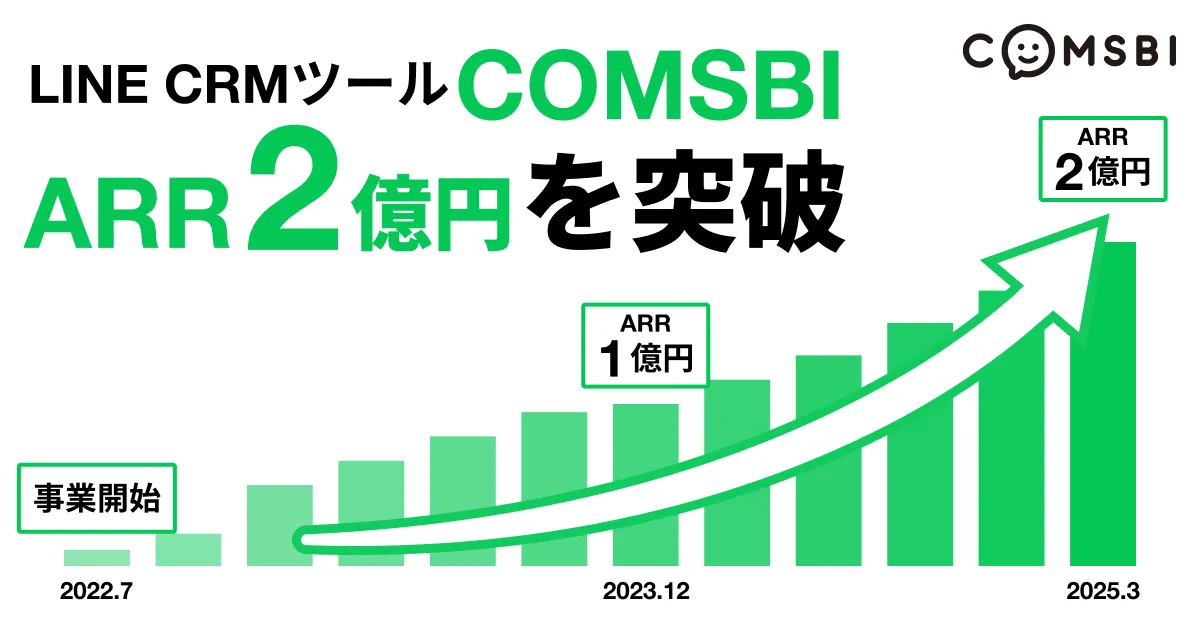 株式会社ソニックムーブが提供するLINE CRMツール『COMSBI(コムスビ)』は、2025年3月時点で年間経常収益(ARR)が2億円を突破したことを発表しました。これは、初月からの順調な立ち上がりを経て、急成長を遂げた同サービスの実績を示しています。