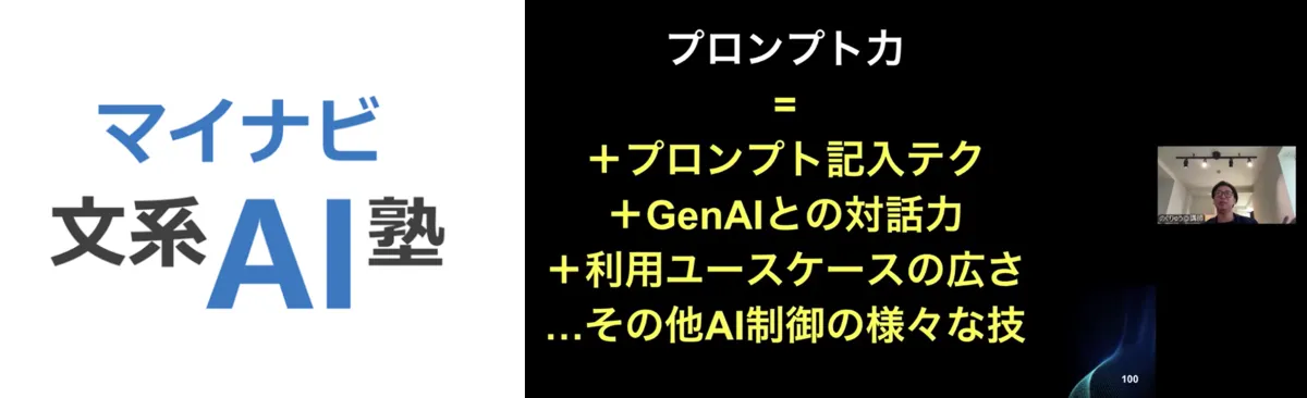 「マイナビ文系AI塾」は、マイナビのエグゼクティブAIアドバイザー、野口竜司氏を講師に迎え、生成AIなどの最新技術を学べるオンライン研修プログラムです。全5回の内容には、AIの基礎知識や実務への活用法、業務改善のための実践的ノウハウが含まれています。